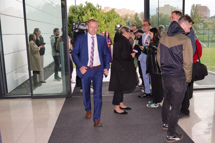 Europoslanec Ondřej Knotek z ANO dorazil do volebního štábu na Chodově.